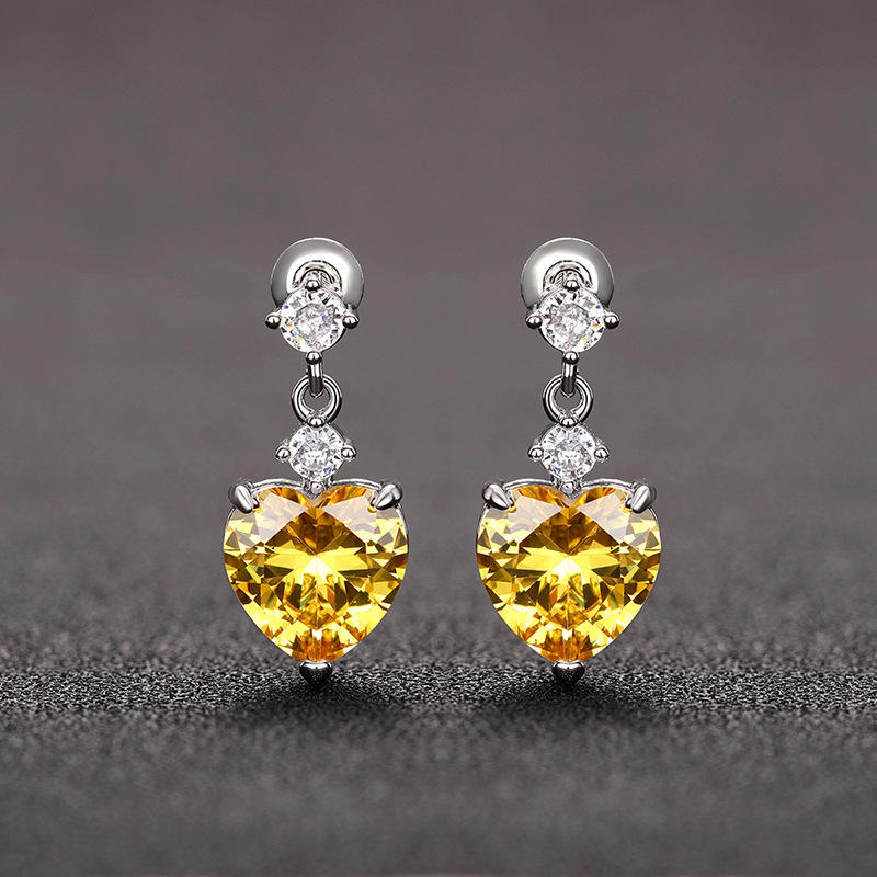 Orecchini Pendenti E3062 con Cristallo Giallo Taglio Cuore, Montatura a Griffe, Gioielli Romantici da Donna per Matrimonio