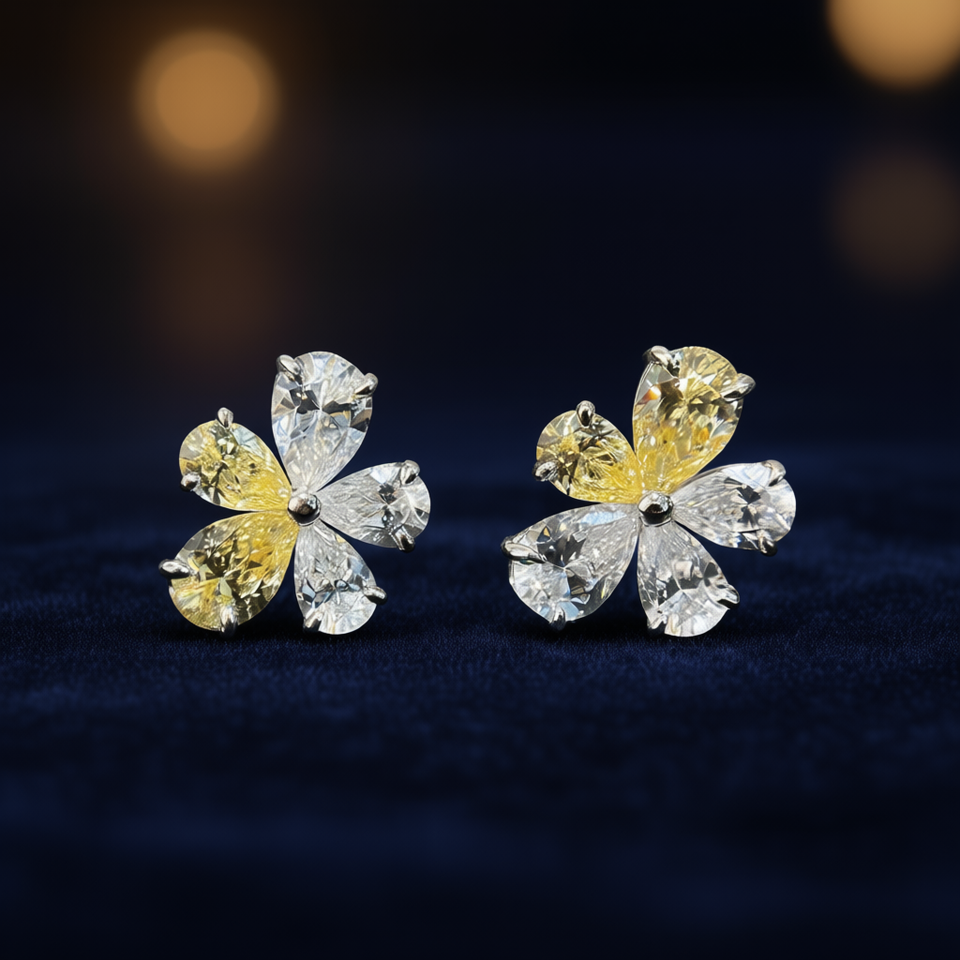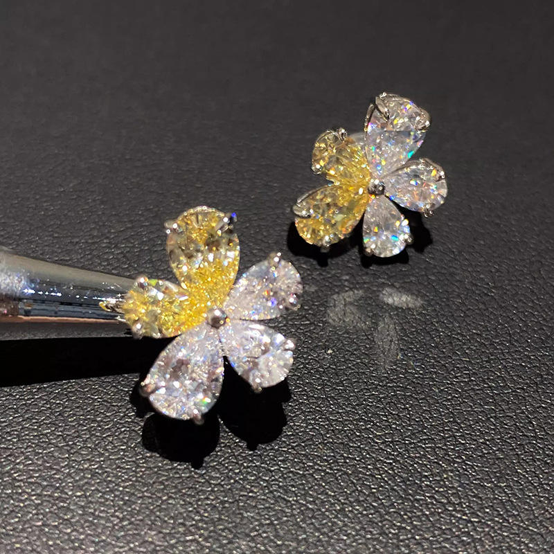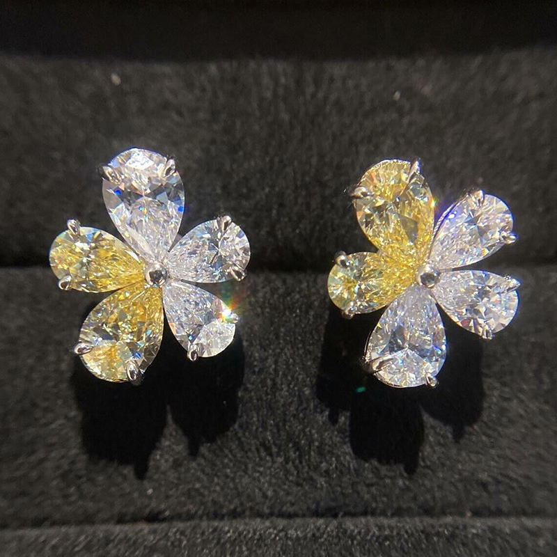 E3065 White Gold Diamond Earrings Pear Cut Fancy Color D Natural Luxury Women's Wedding Jewelry