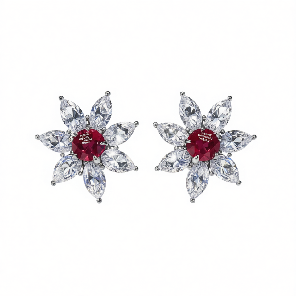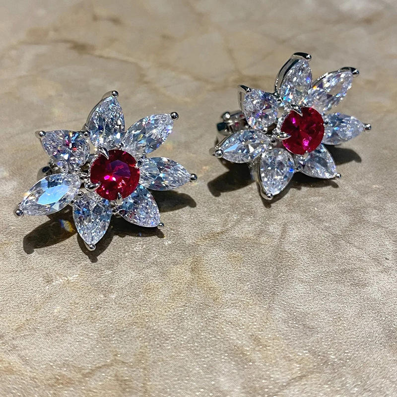 E3081 Flower Stud Earrings White Gold Zircon Marquise Cut Claw Setting Women's Party Romantic Fashion Jewelry