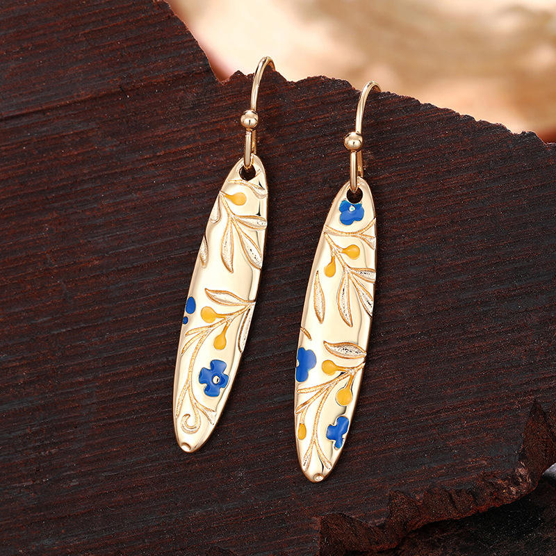 E3125 Orecchini Pendenti in Ceramica Placcati Oro con Motivo Vegetale Vintage, Gioielli di Moda per Donne