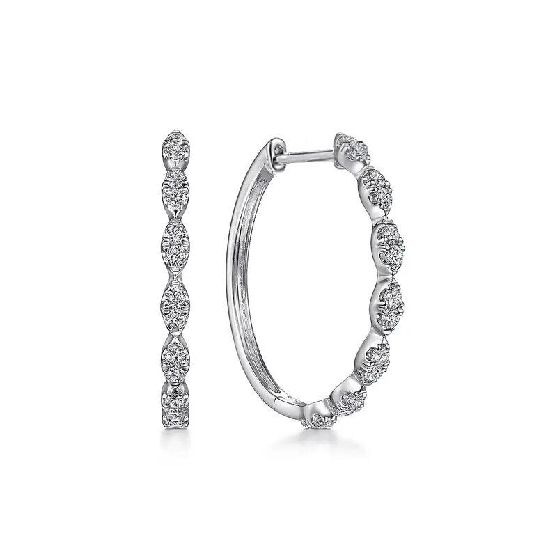 Orecchini a Cerchio E3143 in Oro Bianco per Donne, Gioielli Classici con Cristalli e Strass, Materiale in Lega, Taglio Brillante Rotondo