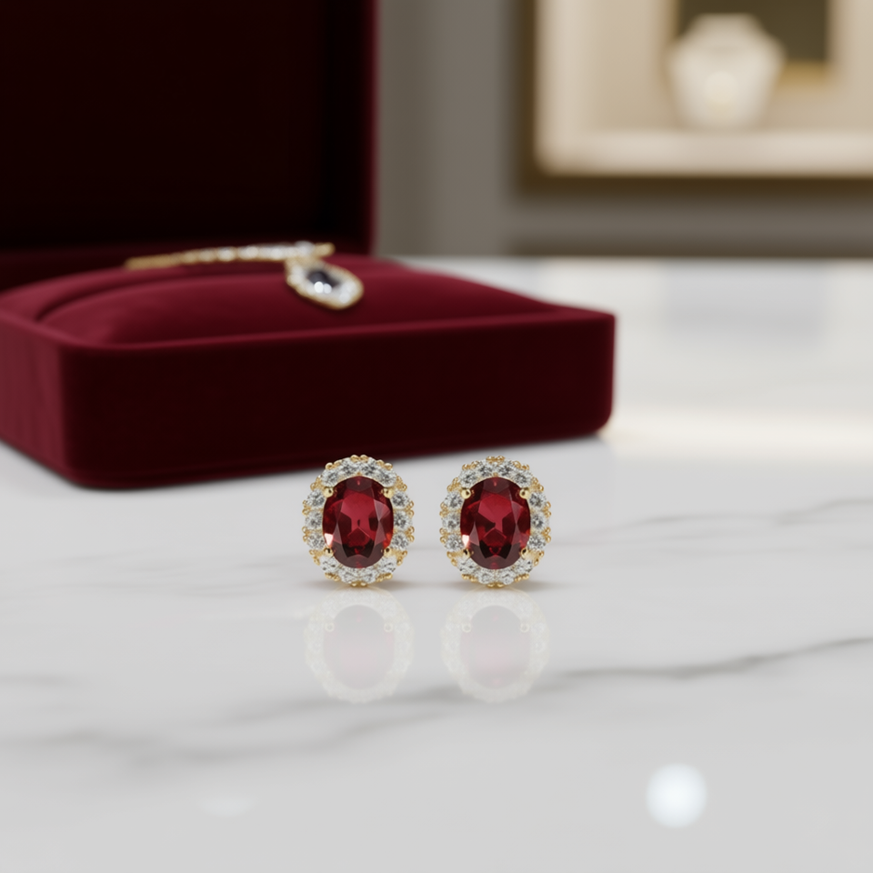 E3155 Pink Gemstone Stud Earrings Oval Cut Claw Setting Women's Classic Fine Jewelry