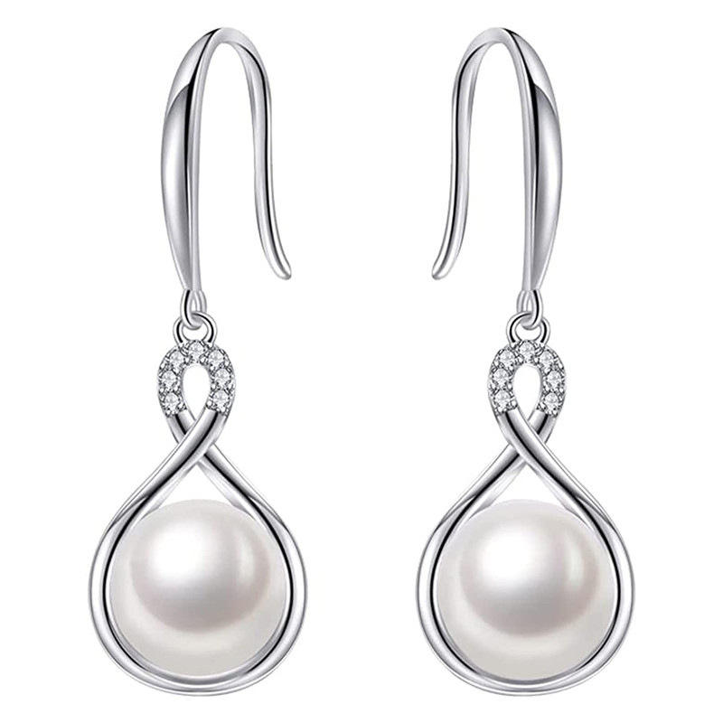 Orecchini Pendenti E3160 in Oro Bianco con Perla d'Acqua Dolce, Montatura a Castone, Gioielli Classici da Sposa per Donna