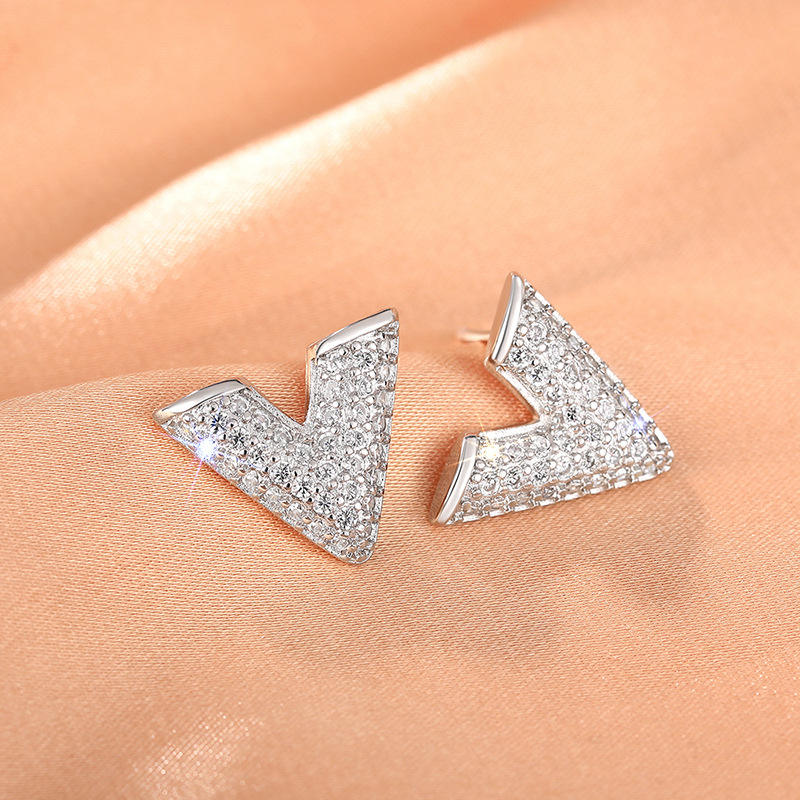 E3185 Arrow Stud Earrings White Gold Crystal Rhinestone Micro Insert Trendy Unisex Everyday Wear