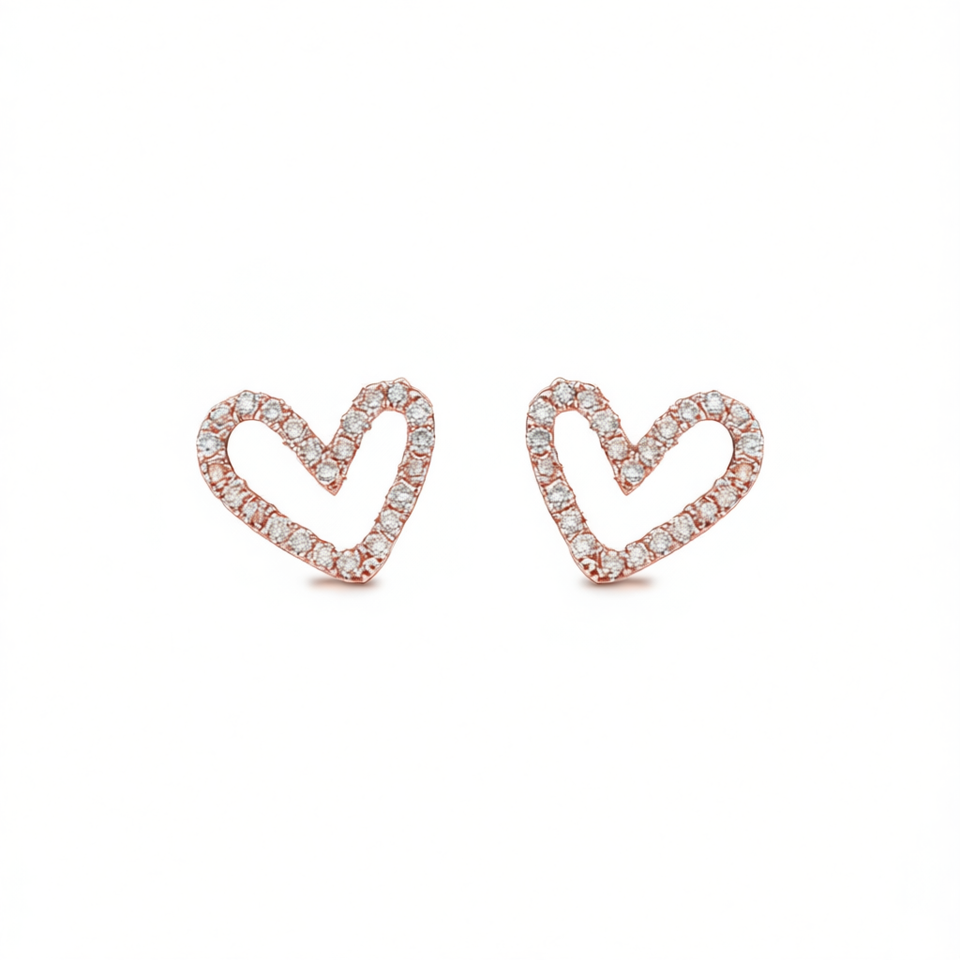 E3193 Rose Gold Diamond Heart Earrings Women's Romantic Everyday Wear G Color Natural Diamonds 14K Rose Gold Plated