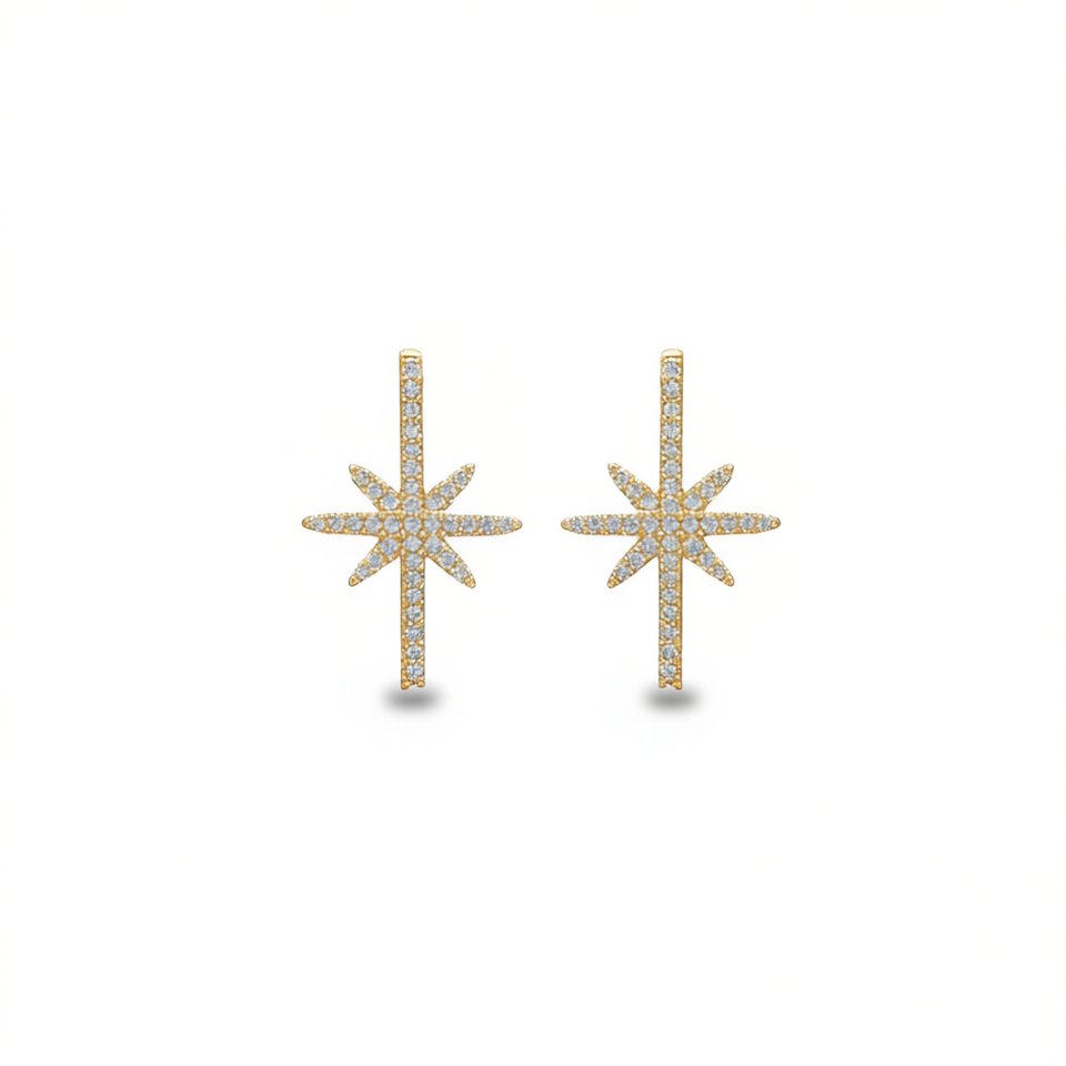 E3207 Golden Star Stud Earrings With Round Zircon Micro Insert For Women Party Fashion Jewelry