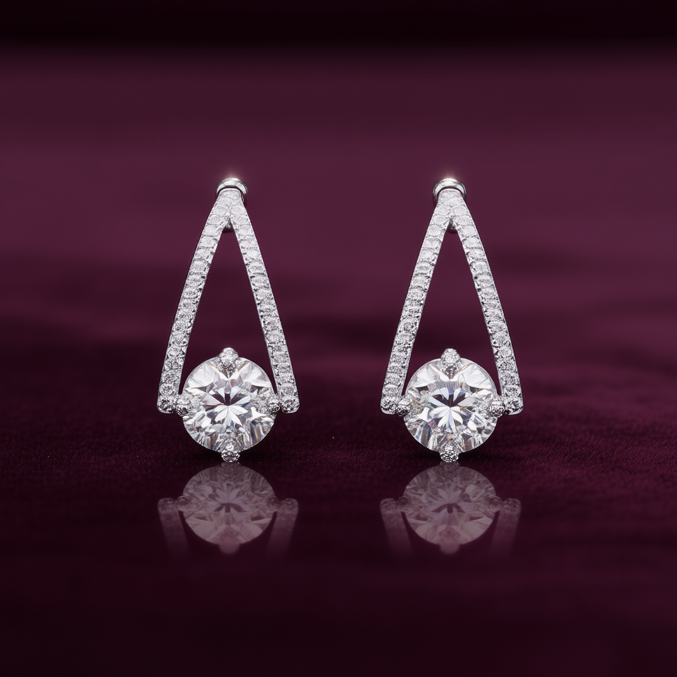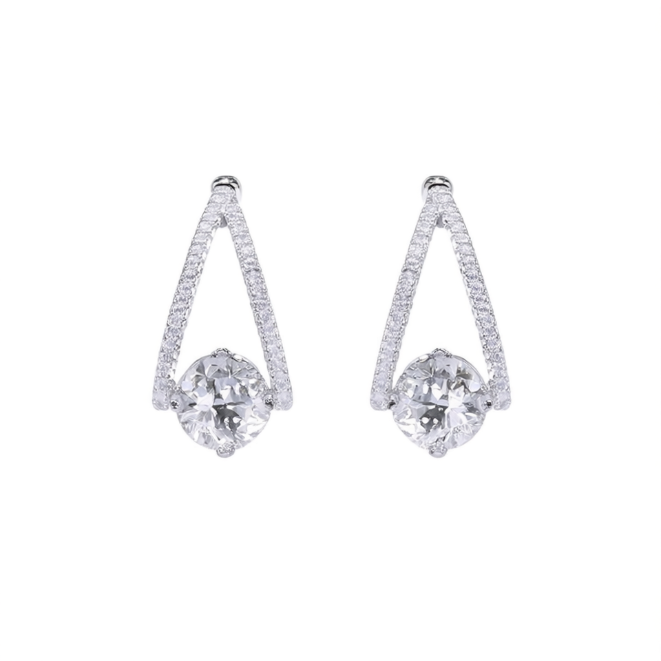 E3209 White Gold Diamond Stud Earrings Round Brilliant Cut Geometric Claw Setting Women's Classic Fine Jewelry