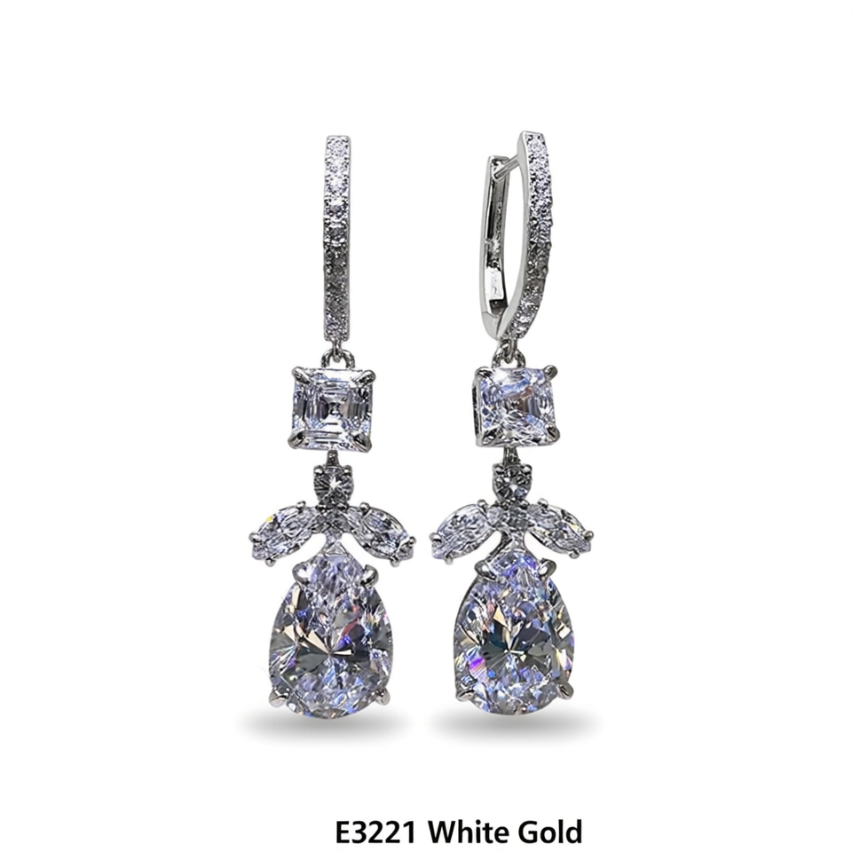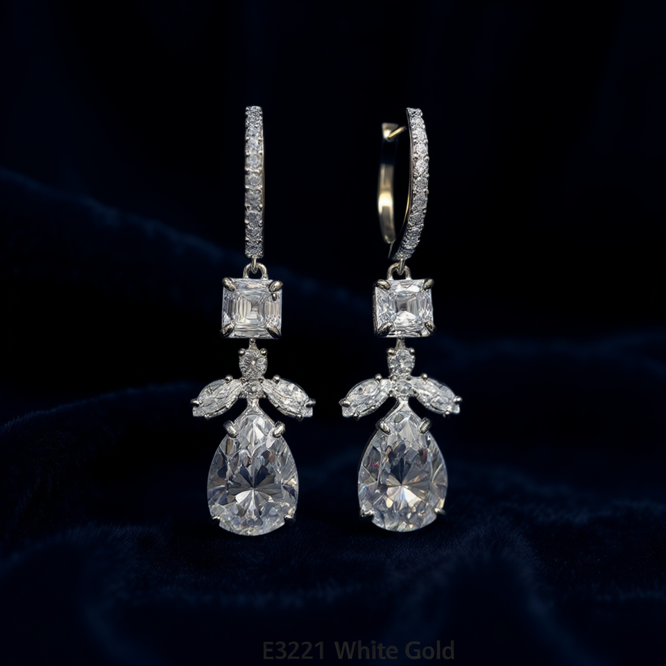 E3221 White Gold Diamond Earrings Pear Cut Luxury Women's Wedding Jewelry Natural D Color