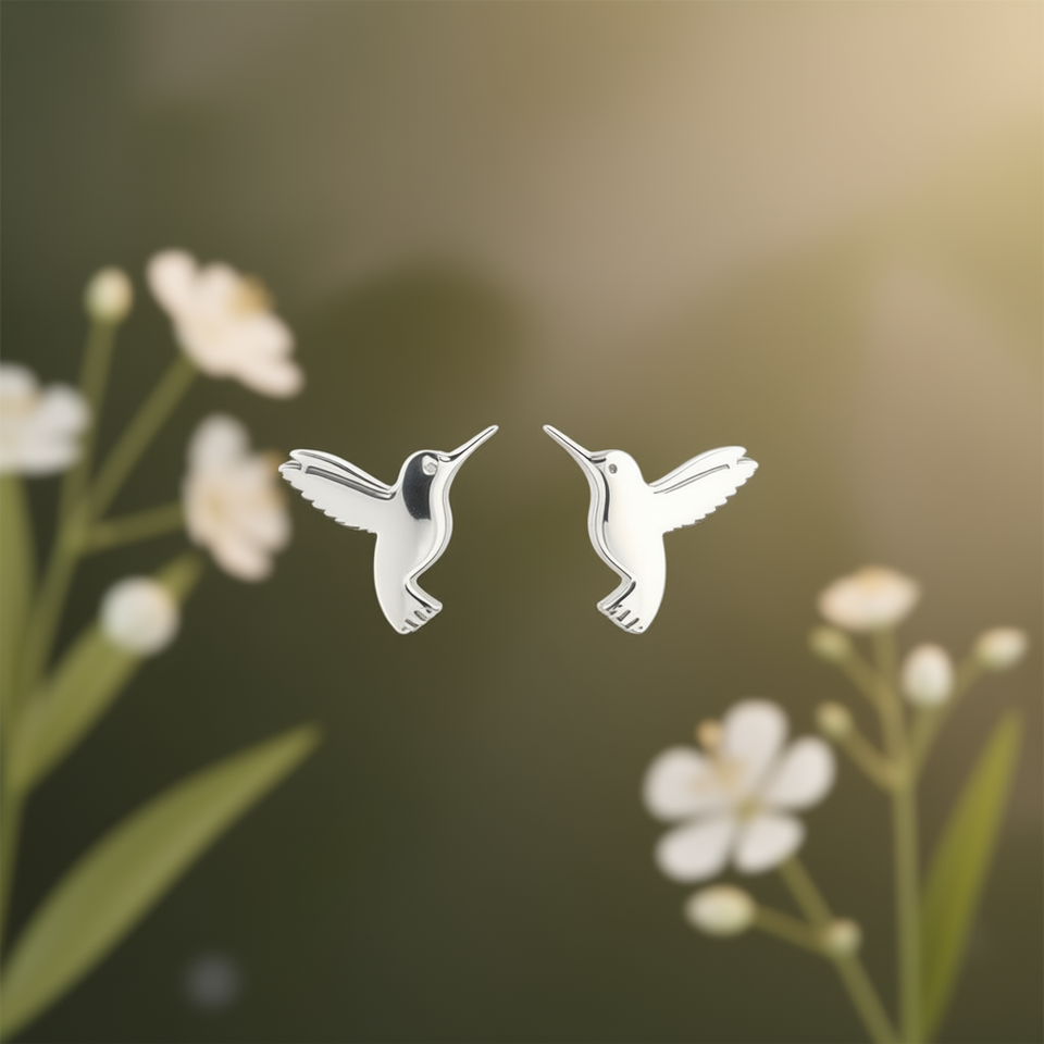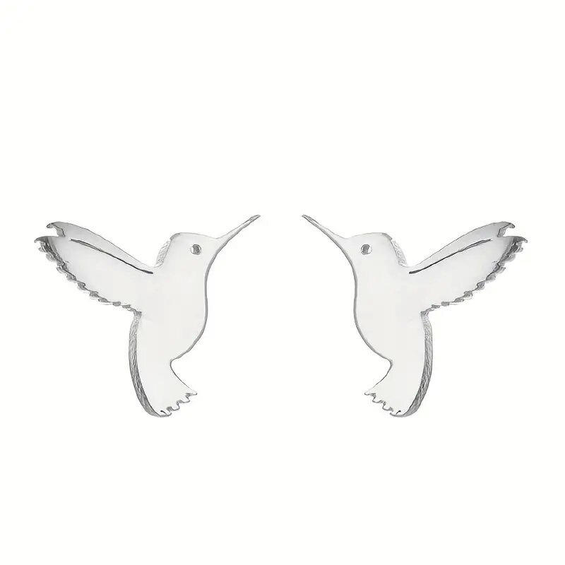 E3245 White Gold Hummingbird Stud Earrings Minimalist Animal Design Unisex Fine Jewelry