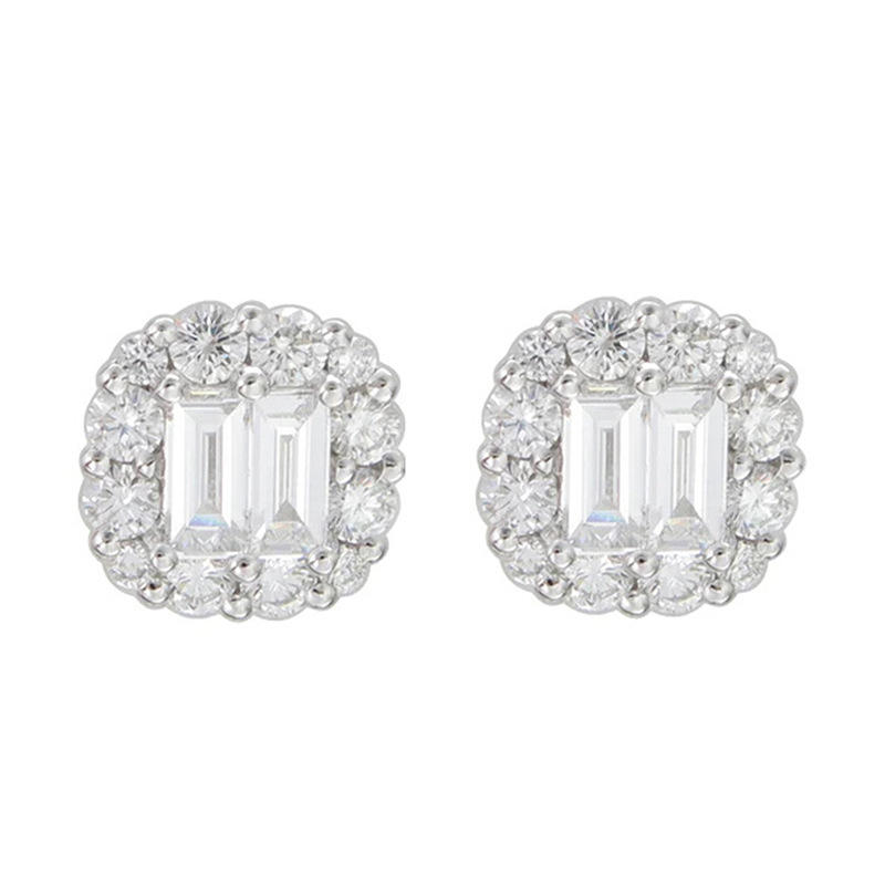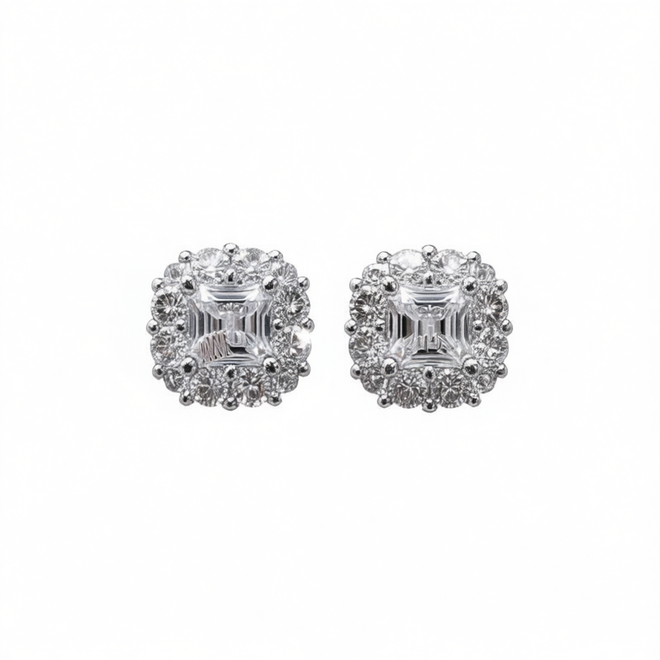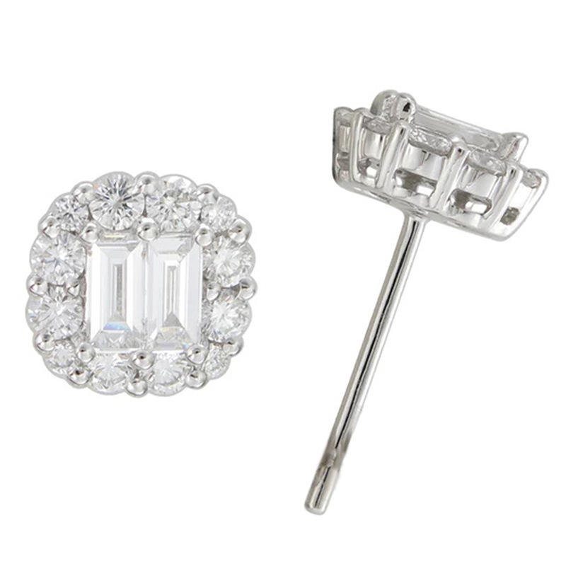 E3318 White Gold Diamond Earrings Emerald Cut Natural Classic Women's Jewelry