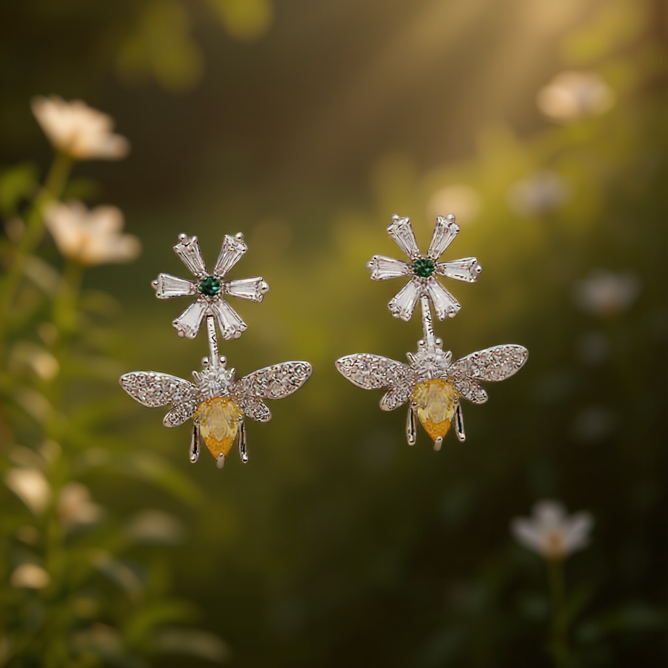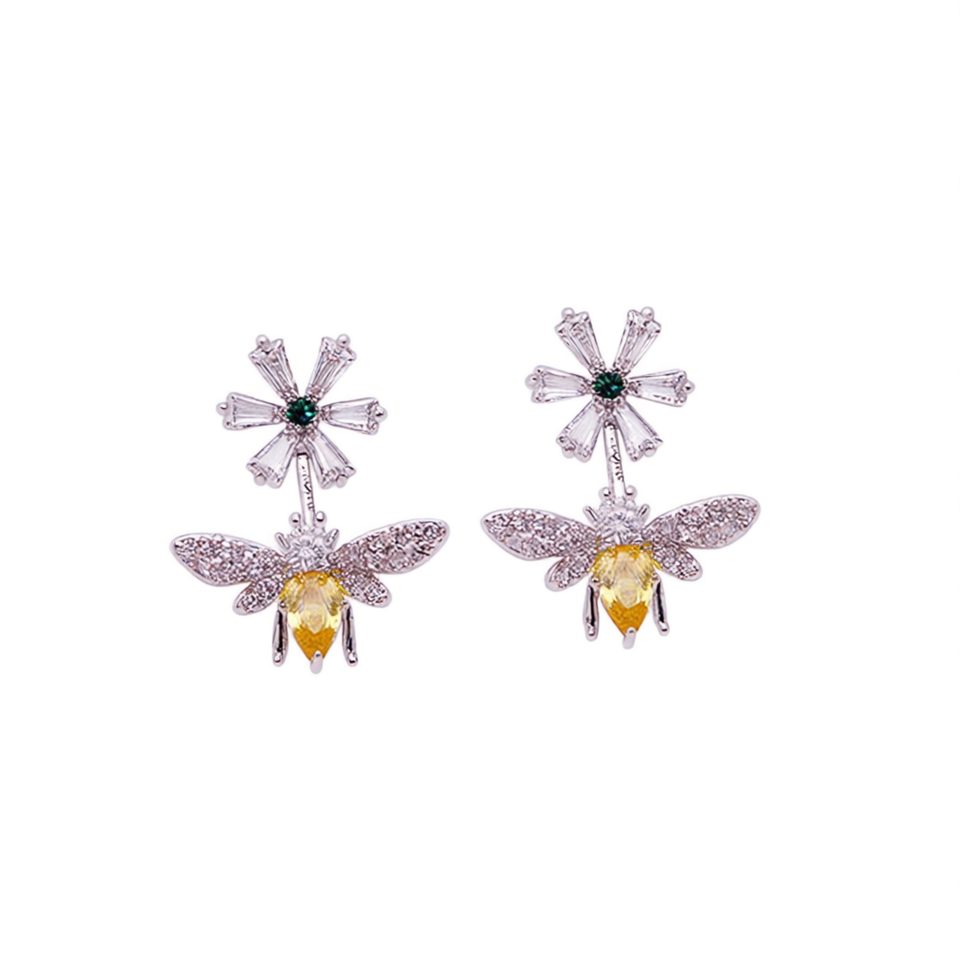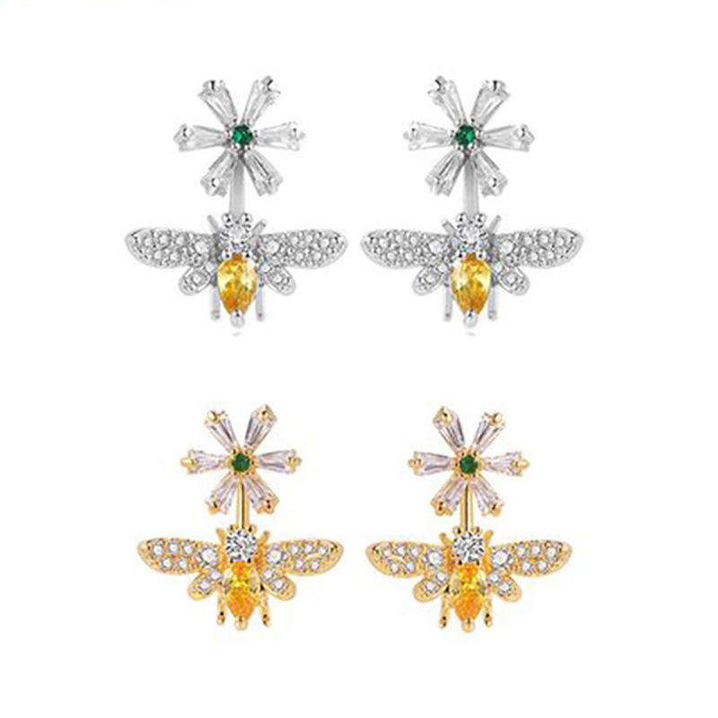Orecchini a perno E334 a forma di insetto dorato da donna, con strass di cristallo, gioielli da festa, orecchini in lega alla moda e graziosi