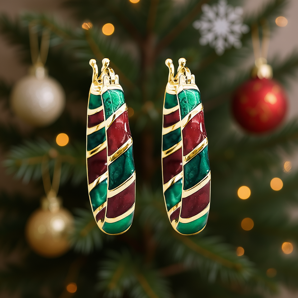 E3368 Gold Oval Earrings Festival Painted Hanging Christmas Decoration Supplies