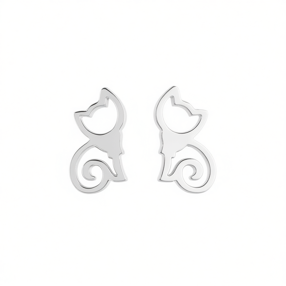 E3418 White Gold Plated Cat Stud Earrings Alloy Unisex Cute Animal Shape Fashion Jewelry Gift