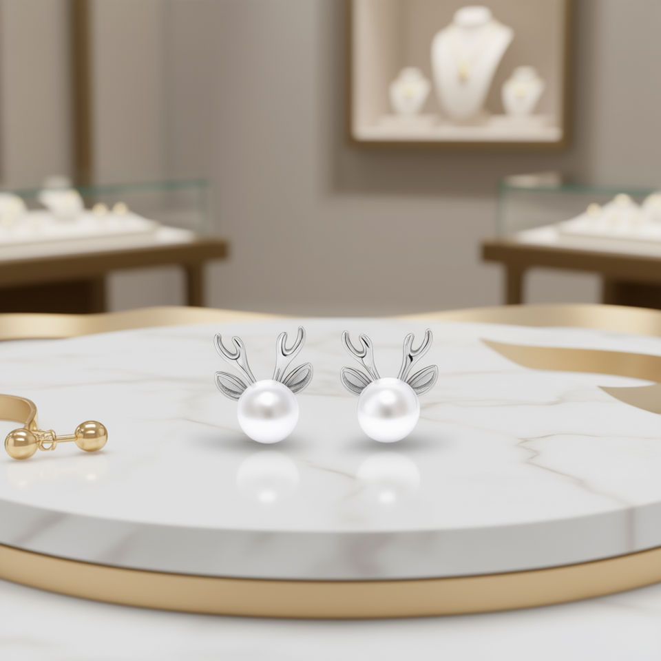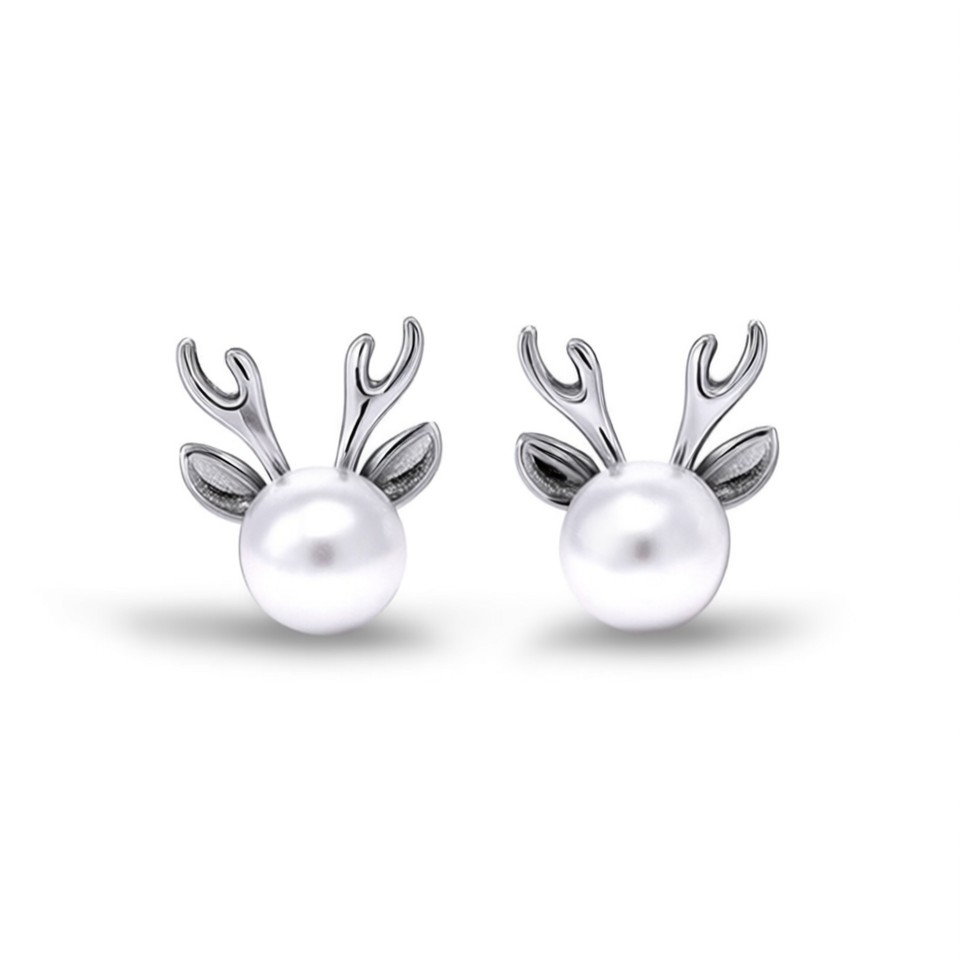 E3439 White Gold Stud Earrings With Pearl Animal Design For Women Cute Gift Jewelry