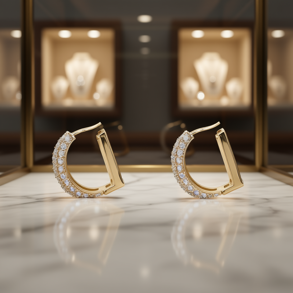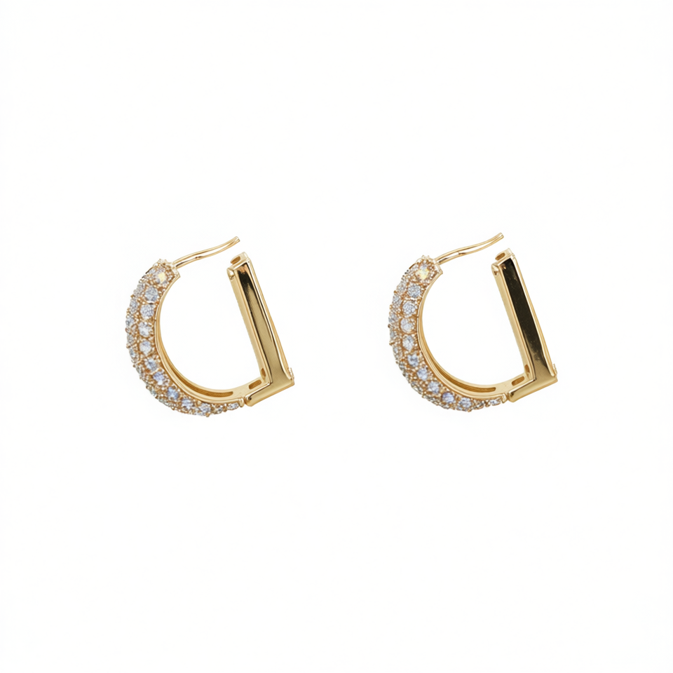 E3454 White Gold Plated Huggie Earrings Crystal Rhinestone Channel Setting Geometric Luxury Women's Everyday Wear
