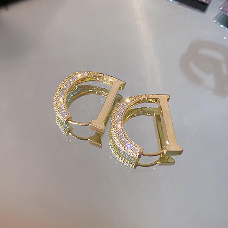 E3455 Golden Hoop Earrings Yellow Gold Crystal Channel Setting Women's Classic Everyday Wear