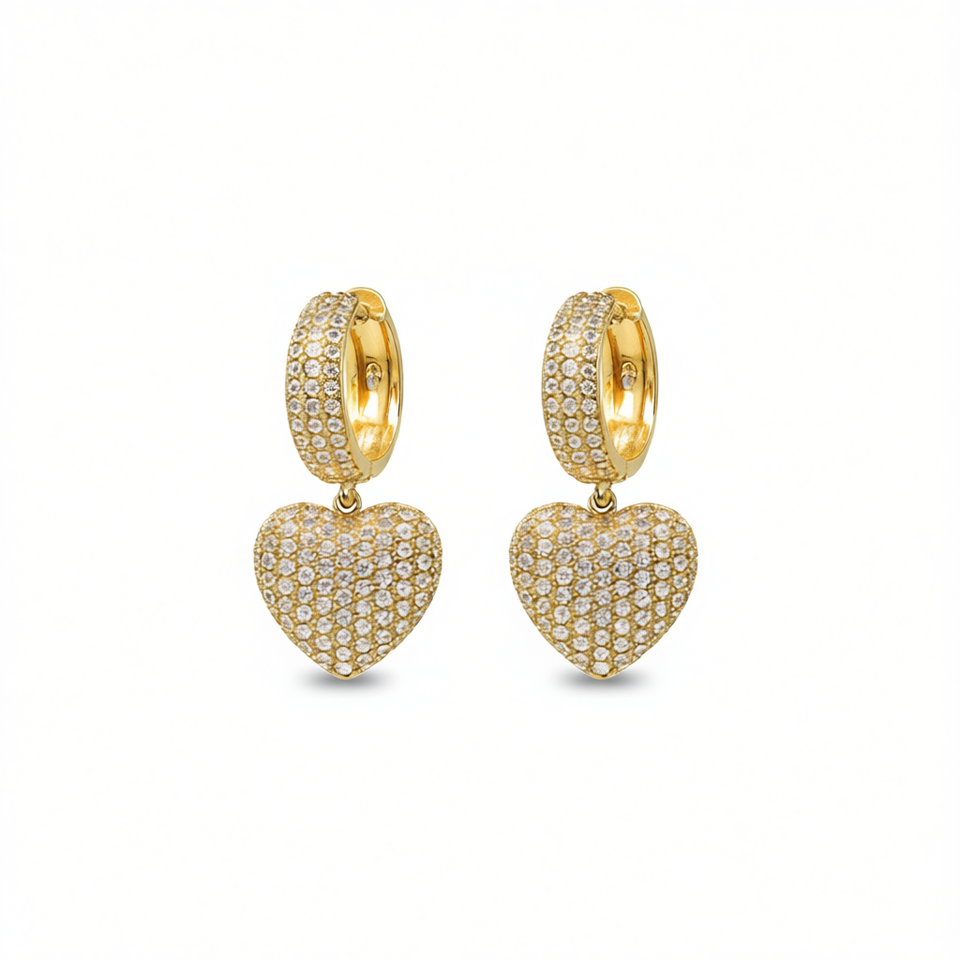 E3466 Golden Diamond Heart Earrings 22k Gold Plated Women's Romantic Everyday Wear