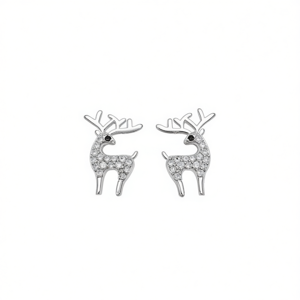E3469 Gold Plated Deer Stud Earrings With Round Brilliant Cut Micro Insert Alloy Cute Animal Design Unisex Gift Jewelry