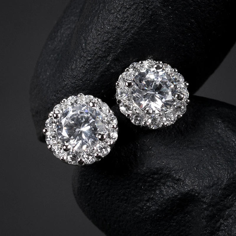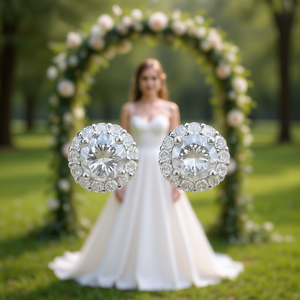E3488 White Gold Diamond Stud Earrings Round Brilliant Cut Claw Setting Women's Classic Wedding Jewelry