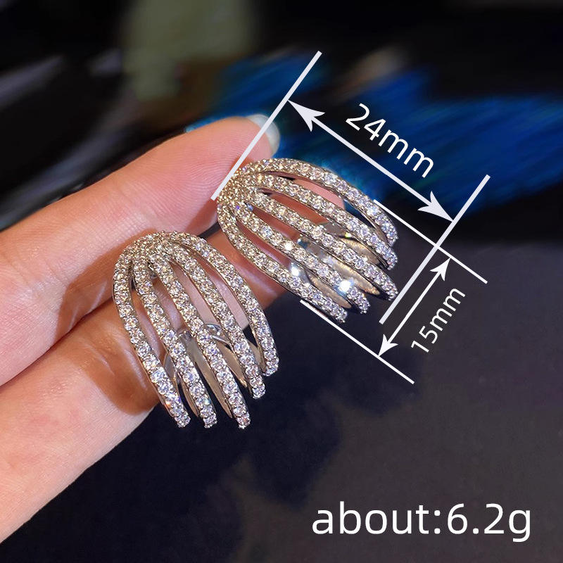E3512 White Gold Crystal Stud Earrings Channel Setting Luxury Women's Everyday Wear