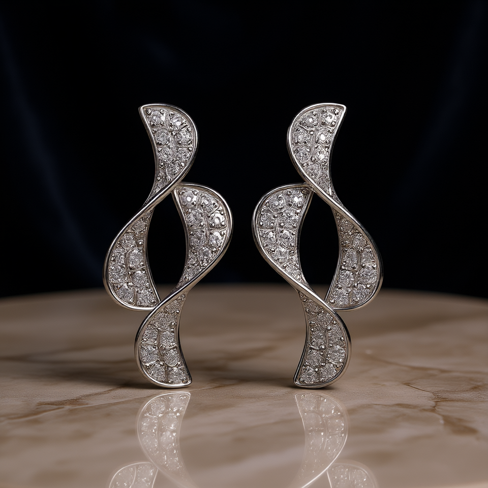 E3513 White Gold Diamond Earrings Women's Luxury Fine Jewelry Natural Diamonds Twisted Design Statement Studs