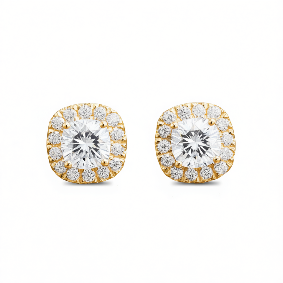 E3545 Diamond Earrings Yellow Gold Round Brilliant Cut G Color Natural Diamonds Women's Classic Everyday Wear