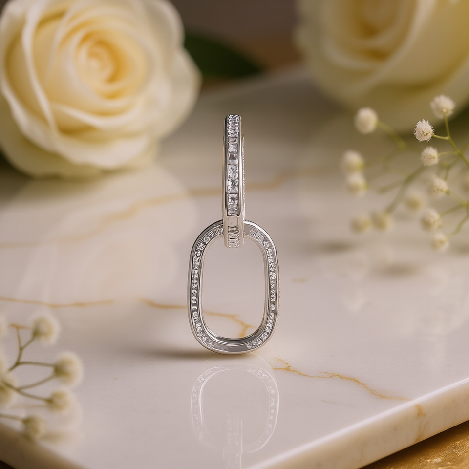 E3569 White Gold Moissanite Pendant Earrings Minimalist Channel Setting Unisex Jewelry