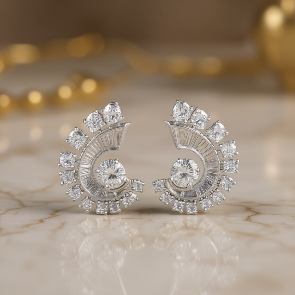 E3589 White Gold Diamond Stud Earrings Round Brilliant Cut Geometric Luxury Women's Jewelry Claw Setting