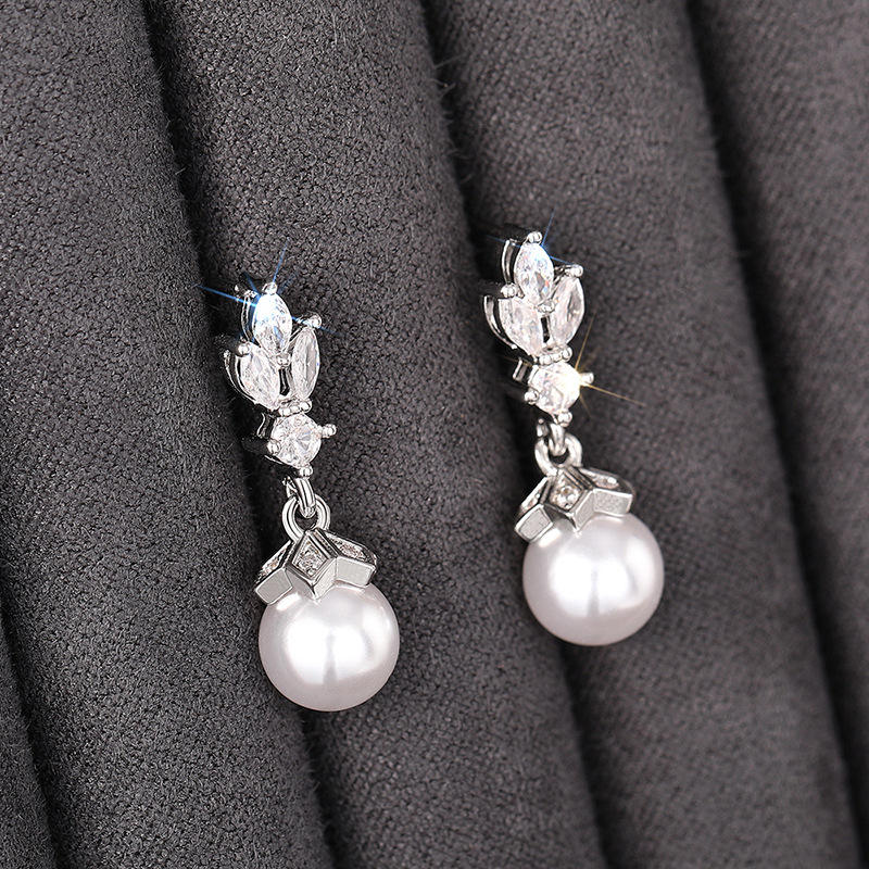 E3597 White Gold Akoya Pearl Drop Earrings AAA Round Cultured Pearl Women's Classic Wedding Jewelry 18K Gold Claw Setting