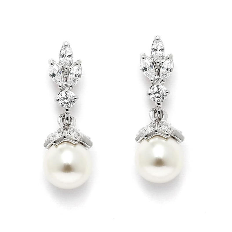 E3597 White Gold Drop Earrings With Imitation Pearl And Marquise Cut Diamond For Wedding Women's Fashion Jewelry
