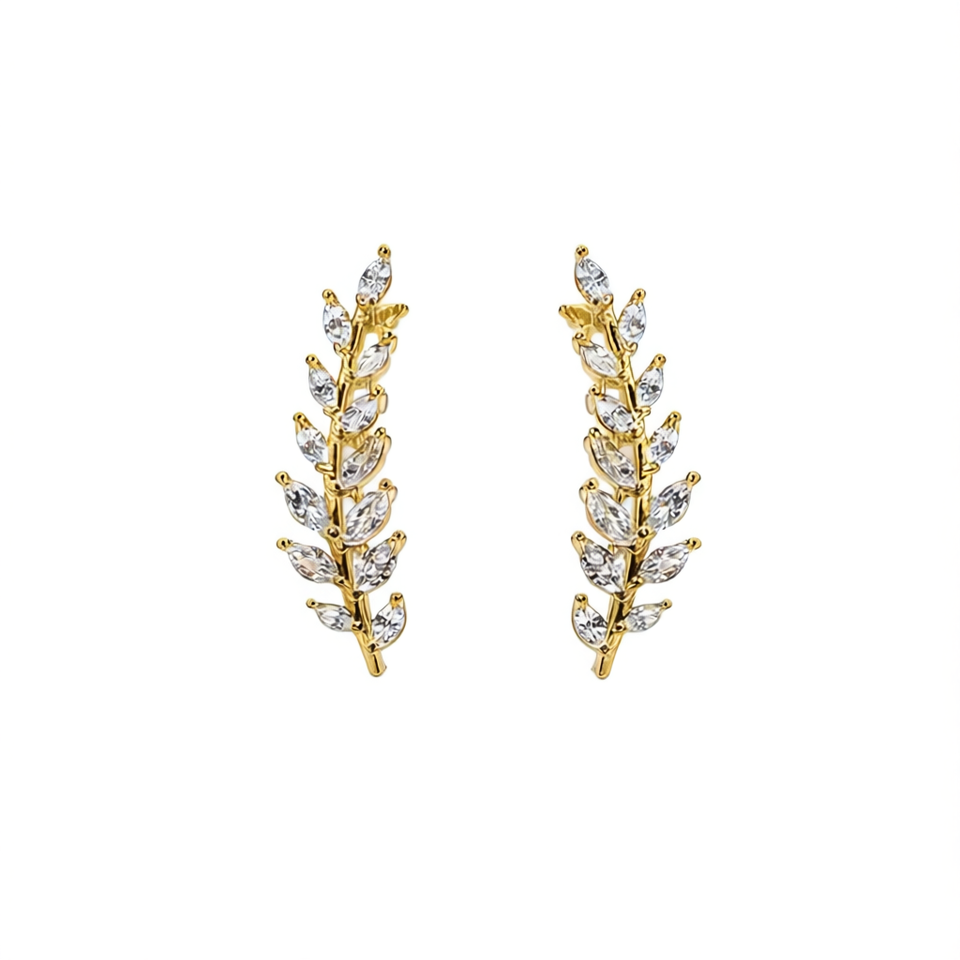 E3627 White Gold Stud Earrings Marquise Cut Crystal Plant Design Prong Setting Women's Classic Everyday Wear
