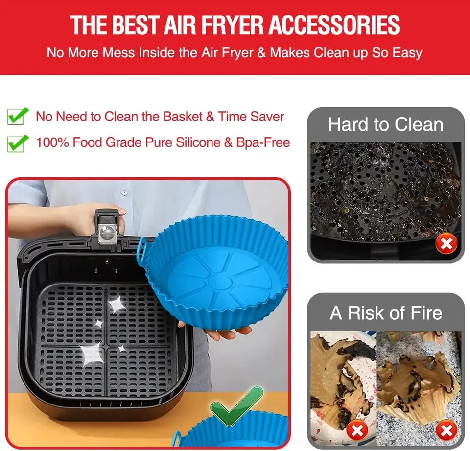E3630 Silicone Air Fryer Liners Inserts Silicone Basket Bowl Pot Reusable Baking Tray Oven Accessories