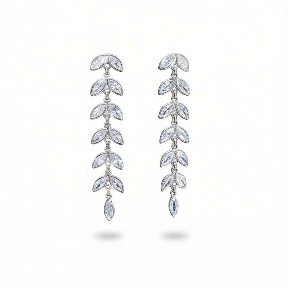 E3644 White Gold Chandelier Earrings Crystal Rhinestone Plant Design Claw Setting Women's Wedding Classic Style