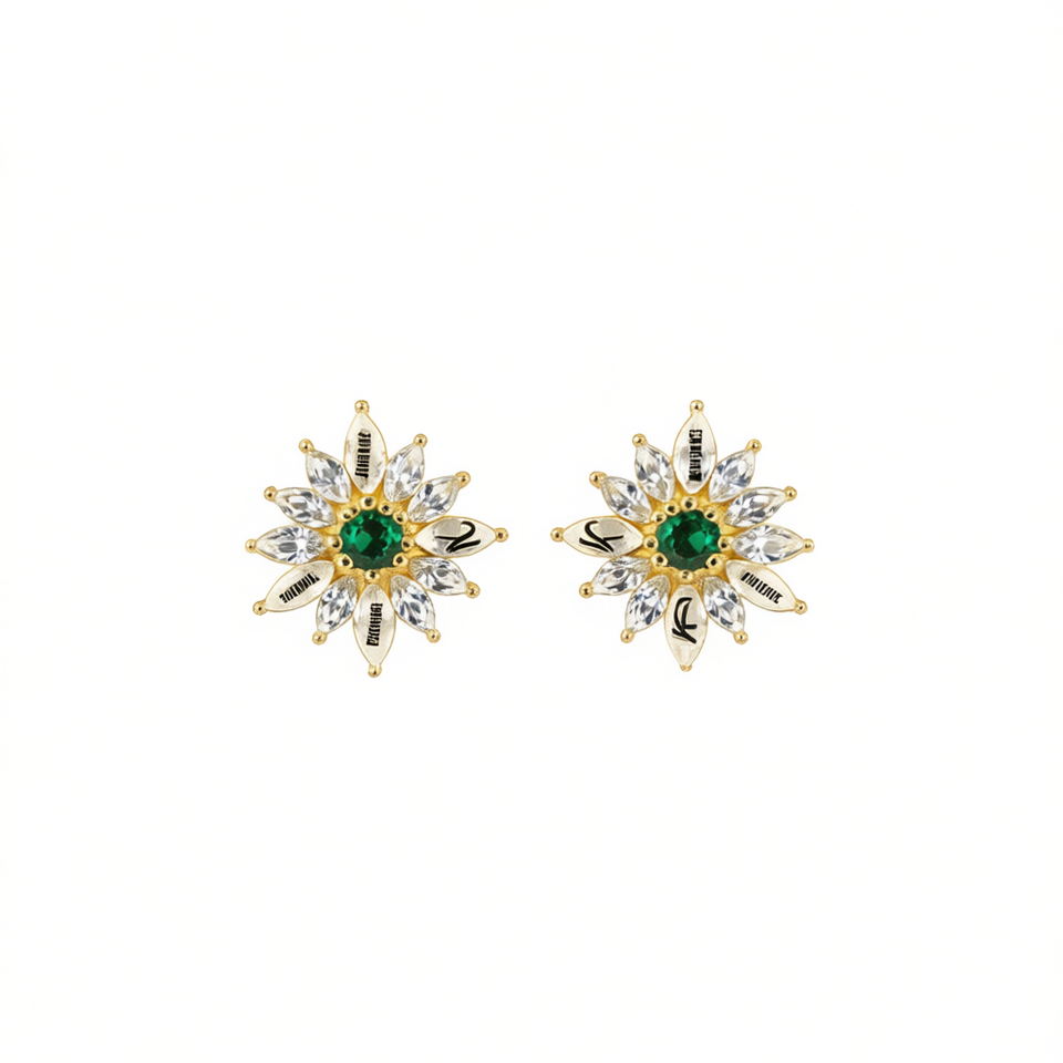 E3678 Gold Flower Stud Earrings Marquise Cut Crystal Rhinestone Claw Setting Women's Classic Everyday Wear