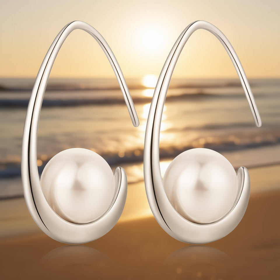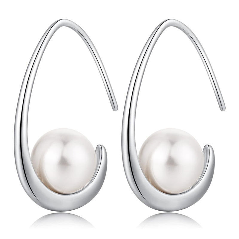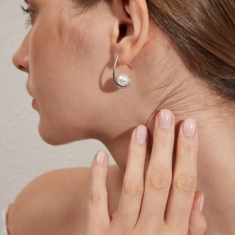 Orecchini a Cerchio in Oro Bianco E3697 con Perla Coltivata Incastonata, Stile Minimalista per l'Uso Quotidiano Femminile