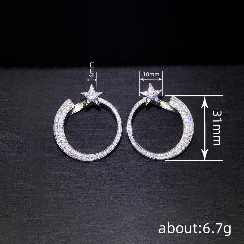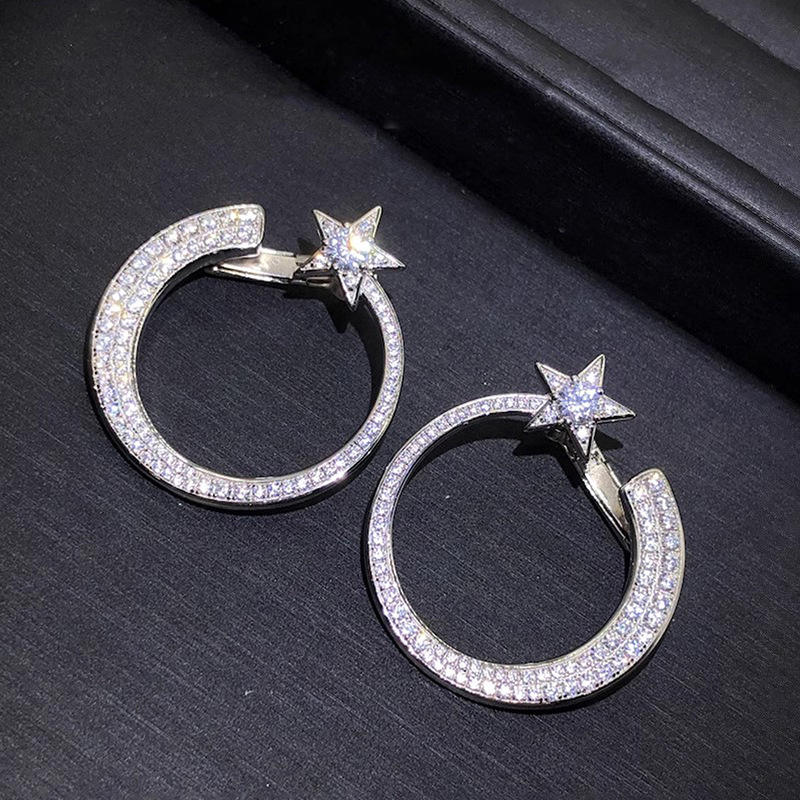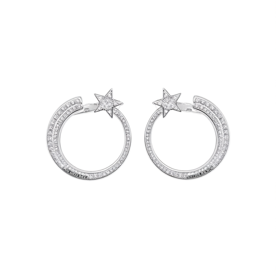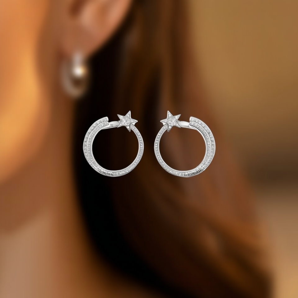 Orecchini a Cerchio in Oro Bianco E3723 con Design a Stella e Diamanti, Gioielli di Lusso per Donna