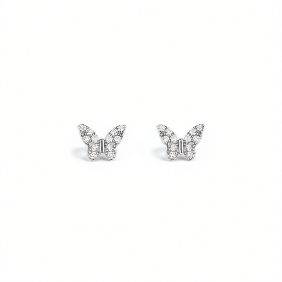 E3734 Orecchini a farfalla in oro bianco con micro inserto di diamanti rotondi per gioielli da donna, idea regalo