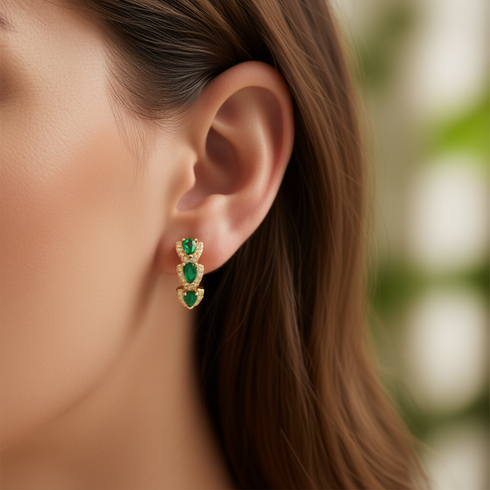 E3754 Gold Hoop Earrings With Green Pear Cut Gemstone Claw Setting Women's Luxury Wedding Fine Jewelry
