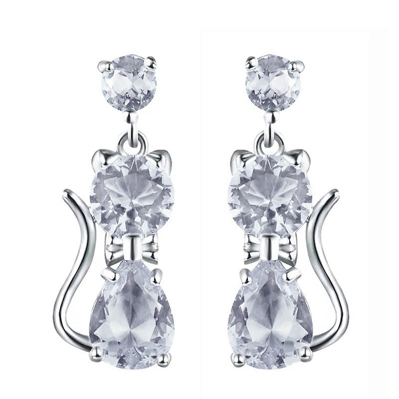 E3822 Purple Cat Drop Earrings Silver Plated Zinc Alloy Cute Animal Design Women's Fashion Jewelry Gift