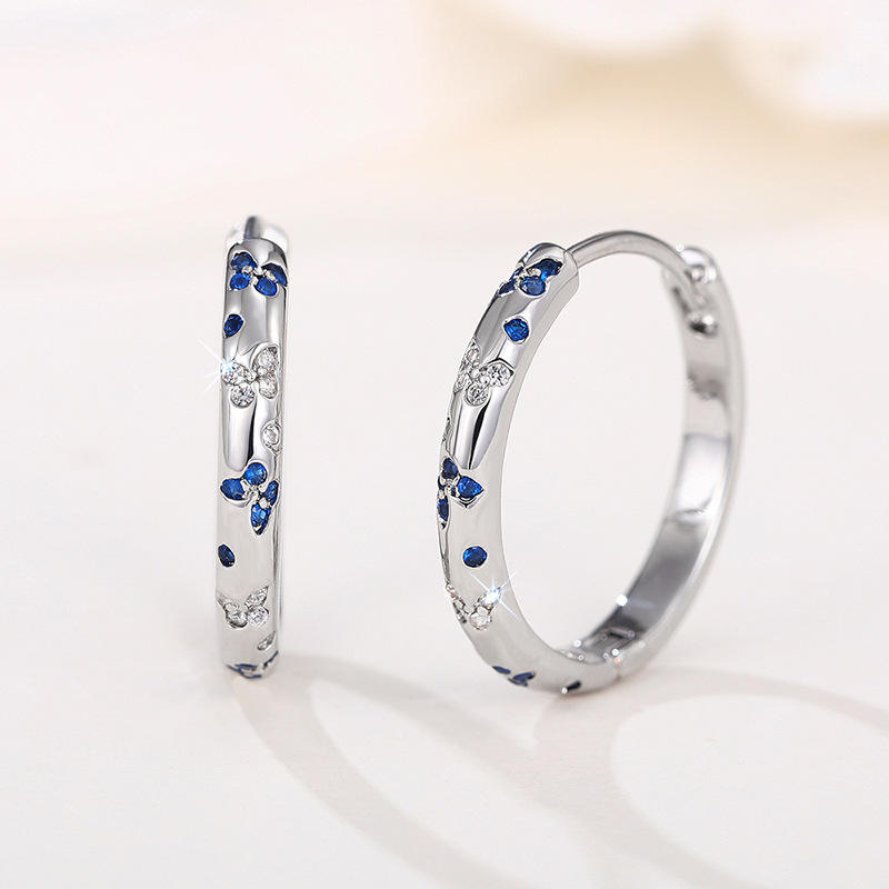 E3849 Orecchini a cerchio in oro bianco con design a farfalla in zaffiro per donna, set di gioielli regalo romantico