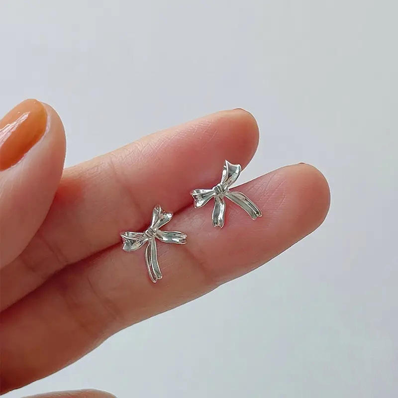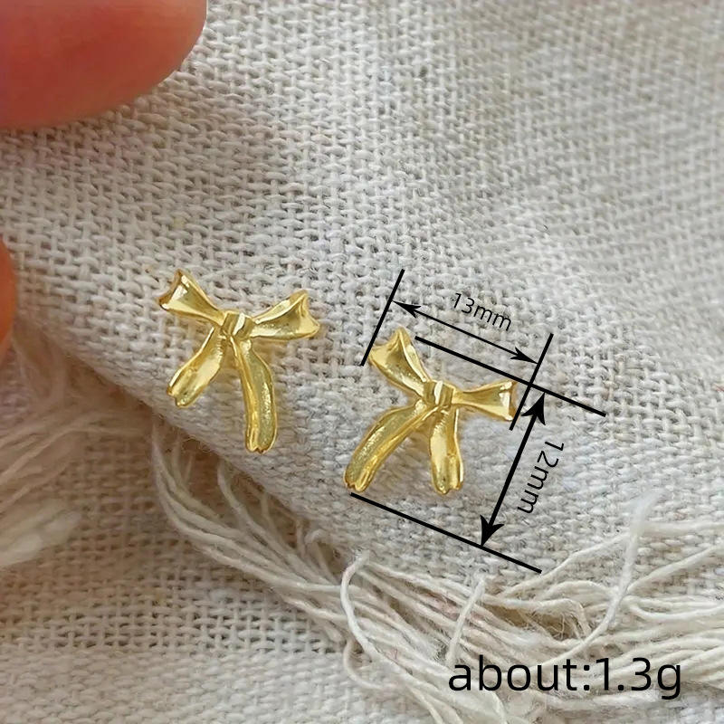 E3865 White Gold Bowknot Stud Earrings For Women Cute Fashion Jewelry Gift