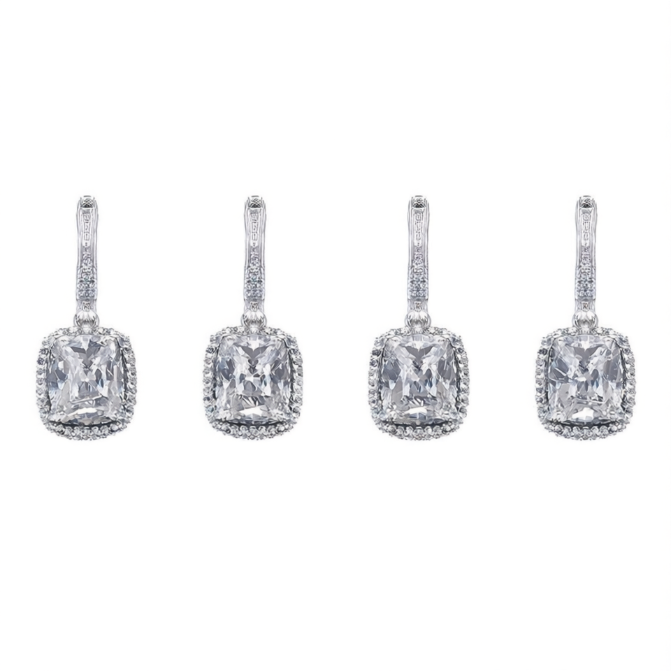 E3902 White Gold Drop Earrings Crystal Rhinestone Geometric Bezel Setting Women's Classic Wedding Jewelry