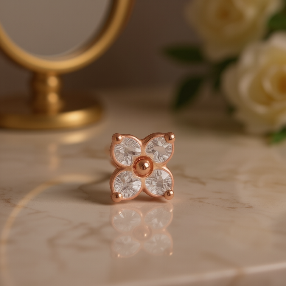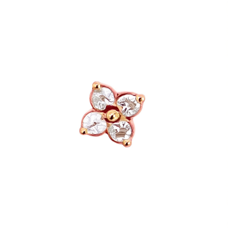 E3918 Orecchini a lobo con fiore in oro rosa e strass di cristallo con montatura a griffe per l'uso quotidiano da donna, stile classico