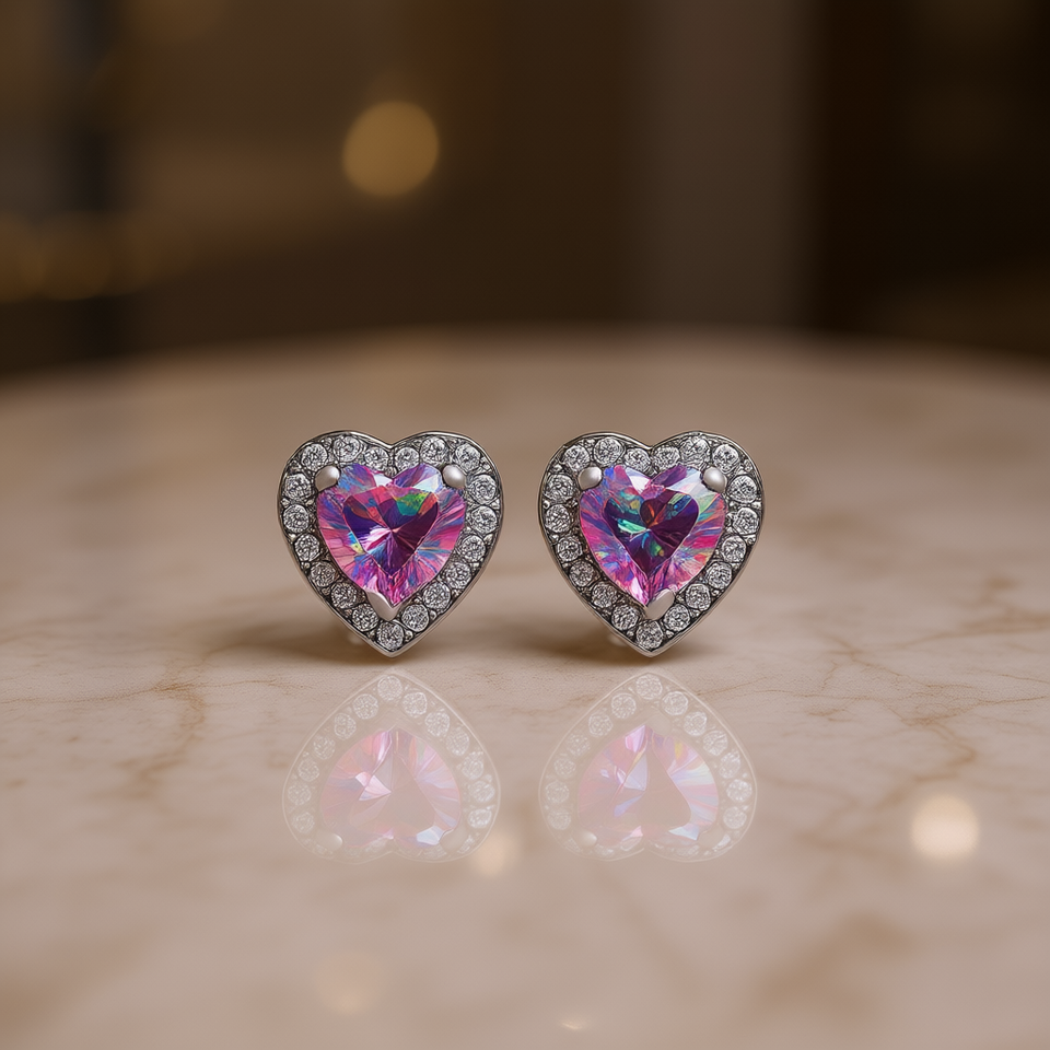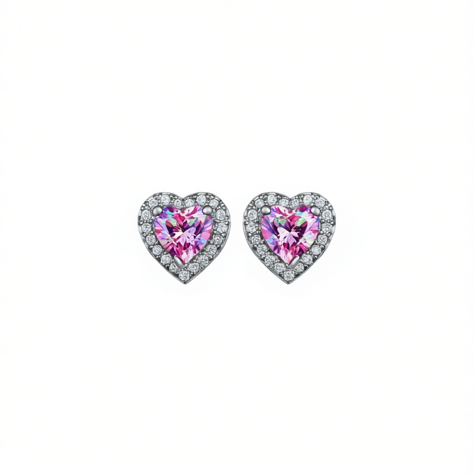 E392 Heart Crystal Stud Earrings Multicolor Rhinestone Women's Romantic Everyday Wear Claw Setting