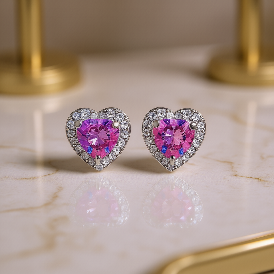 E392 Heart Stud Earrings Multicolor Crystal Women's Romantic Jewelry Claw Setting