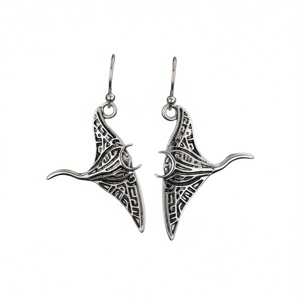 E3946 Antique Silver Wings Drop Earrings Vintage Women's Everyday Wear Fine Dangle Jewelry