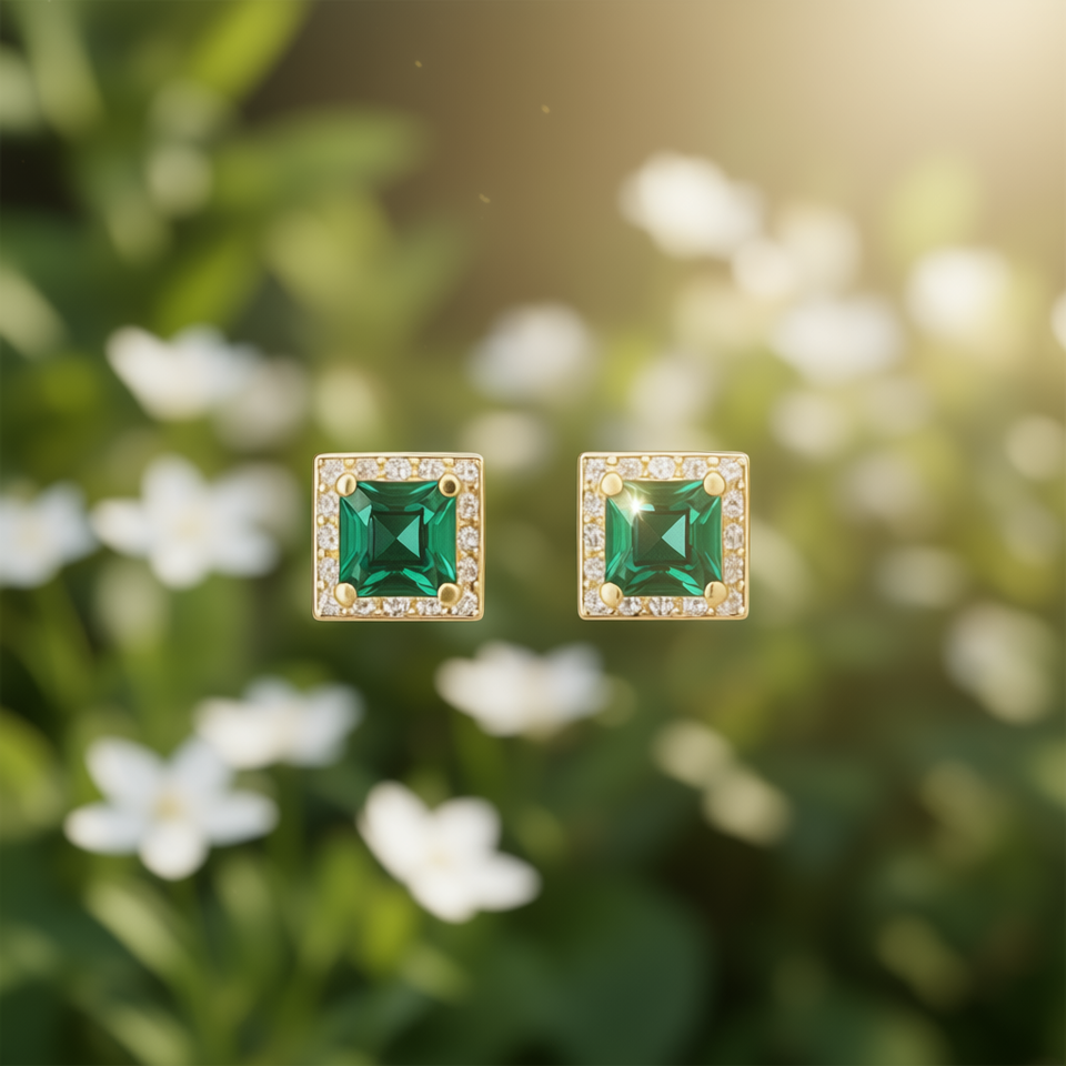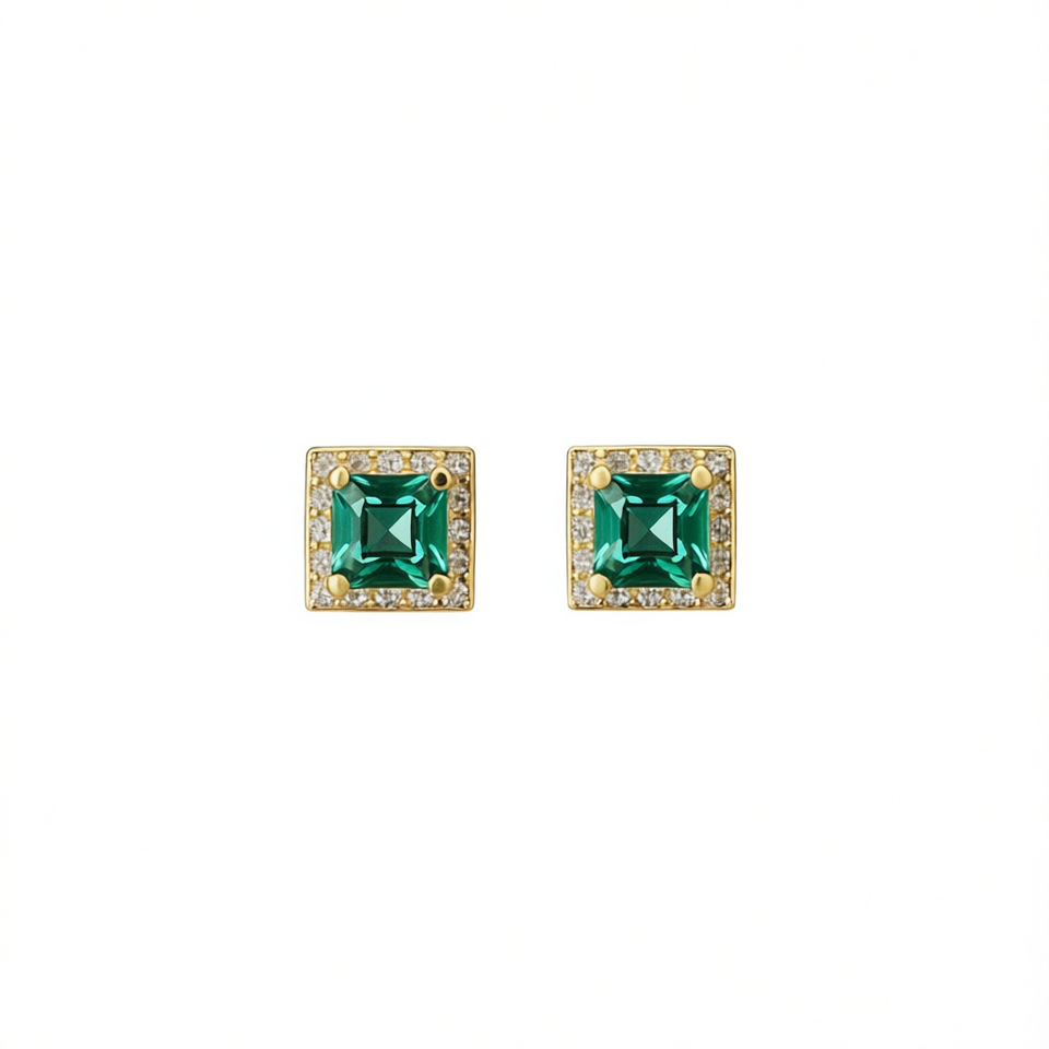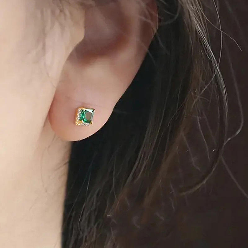 E3949 Golden Emerald Cut Stud Earrings Women's Alloy Classic Geometric Design Claw Setting Fashion Jewelry