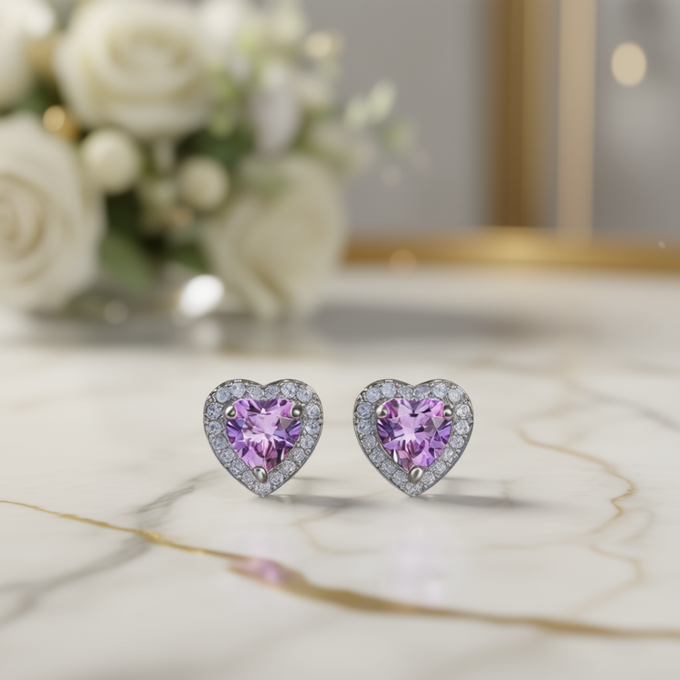 E397 Heart Stud Earrings Green Amethyst Crystal Women's Romantic Jewelry Claw Setting