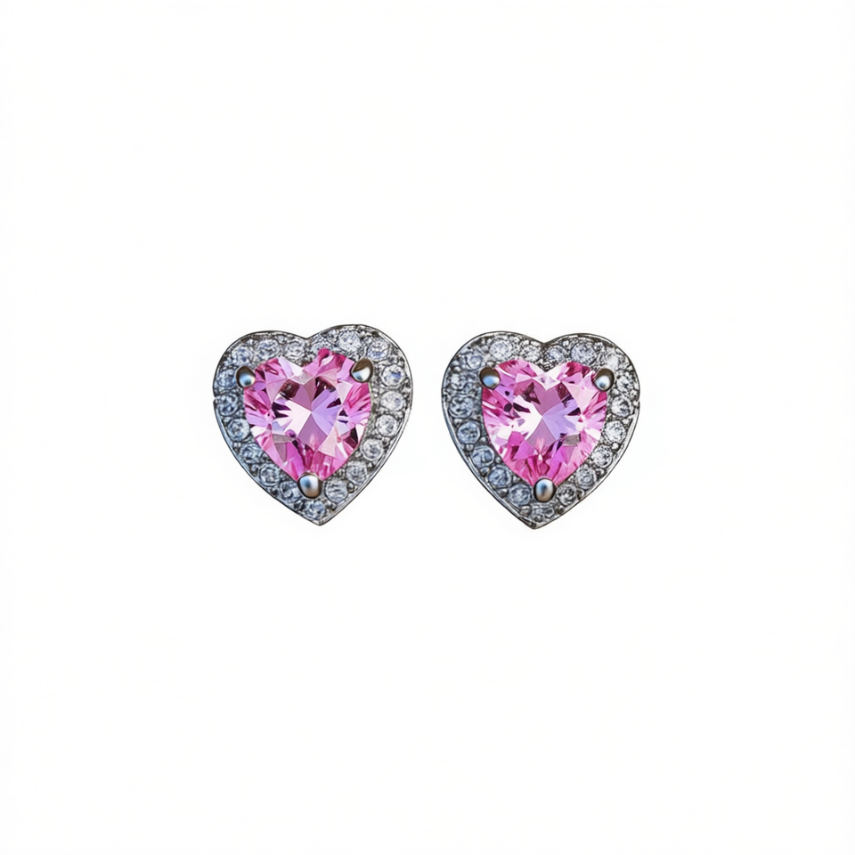 E398 Heart Stud Earrings Pink Crystal Zinc Alloy Women's Cute Everyday Wear Claw Setting