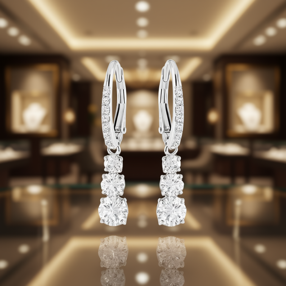 E4004 Orecchini in oro bianco con diamanti, taglio rotondo brillante, colore D naturale, gioielli da sposa classici da donna